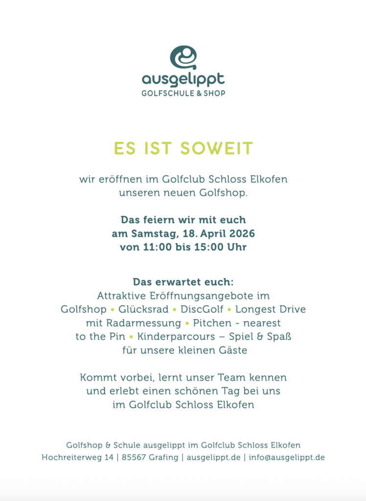 Deine Golfschule im Herzen des Golfclub Schloss Elkofen im Münchner Osten! Egal, ob Sie schnuppern, die Platzreife erlangen oder Ihr Spiel als Profi verbessern möchten – bei uns sind Sie goldrichtig. Tauchen Sie mit uns in die Welt des Golfsports ein. Spielend Golf lernen mit Spaß am Spiel!